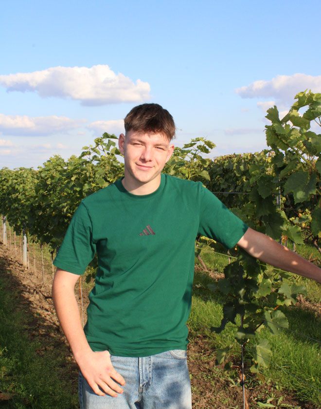 Andreas ist derzeit im zweiten Jahr seiner Winzerausbildung und packt engagiert in unseren Weinbergen mit an. Mit seiner frischen Energie bereichert er den Betrieb und leistet tatkräftige Unterstützung.